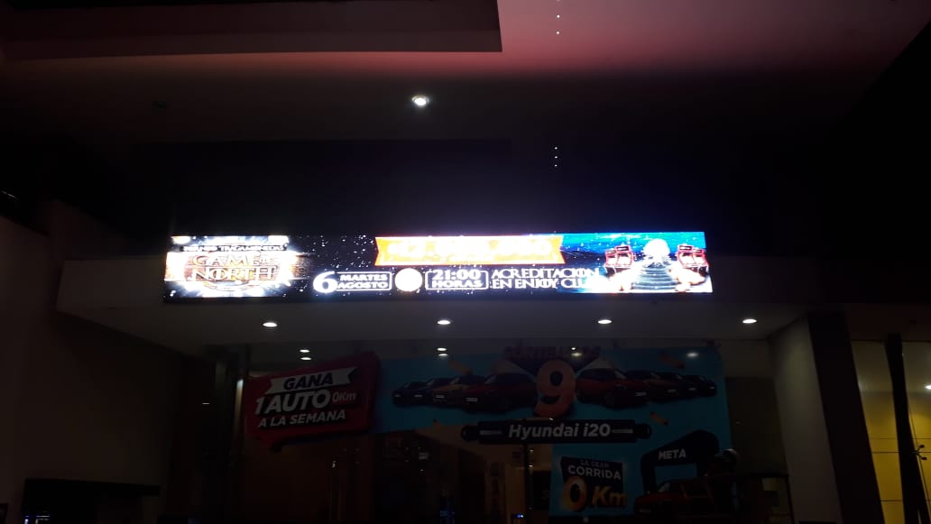 Totem 5x2,4, Pitch 6, Outdoor, protección contra brisa marina ubicado en la costanera. Pantalla LED 6x1, Pitch 6, Outdoor, protección contra brisa marina, ubicado en la boletería del casino. Pantalla LED movil, escenario de 3x2, Pitch 2.6, para eventos. Pantalla LED, Cenefa de 4x0,5, para publicidad digital ubicado en el interior del casino. Pantalla LED, pitch 3.9, 2x0,5, sector OPEN (salón de fumadores).